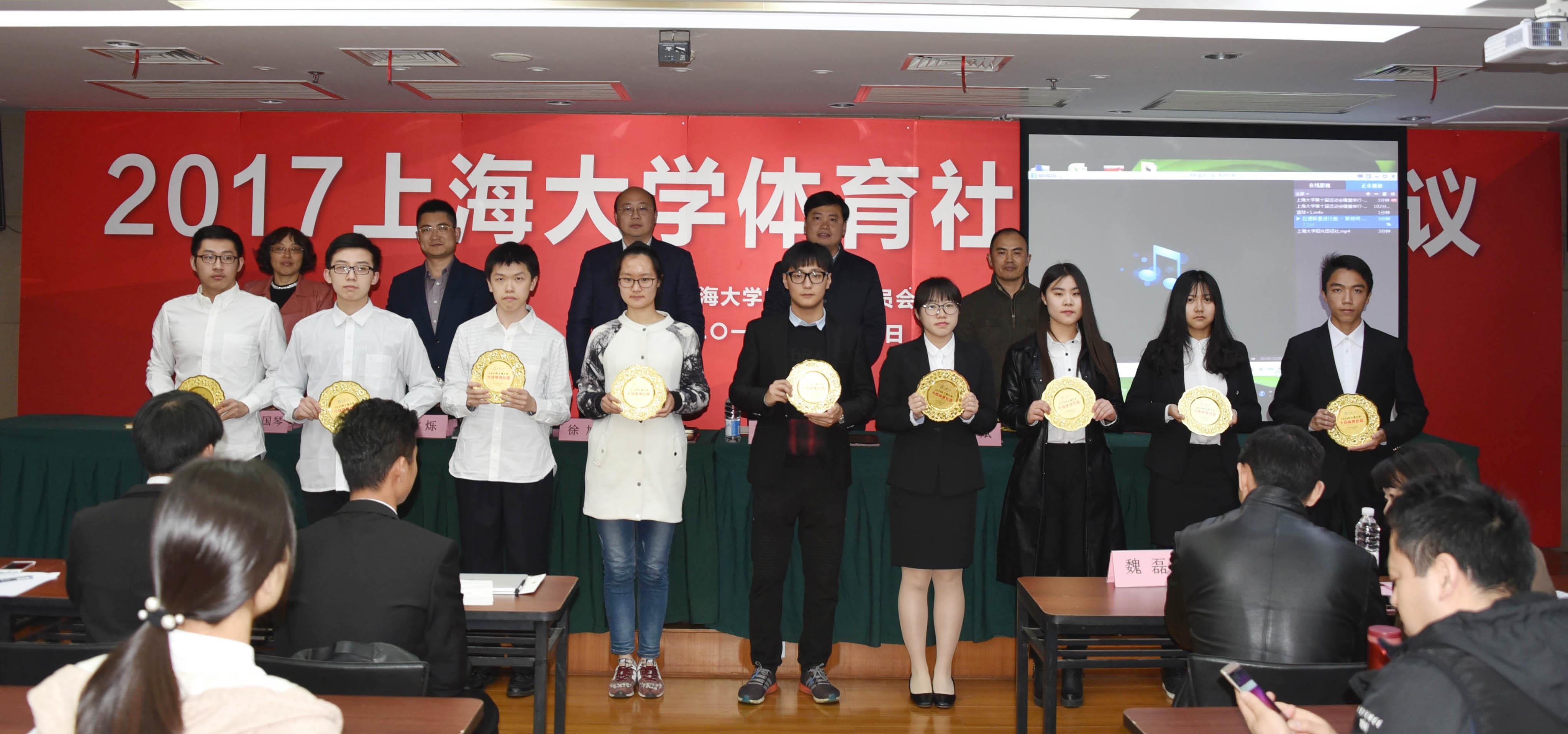 体育学院魏磊副院长做了2016年学校体育社团工作汇报,在学校领导的大力支持下,学院师生群策群力,体育类社团建设规范有序,完善了评价评优体系,增设了五星体育社团、品牌赛事等奖项,校内各项竞赛丰富多彩,校外竞赛成绩丰硕,在2016年的上海市各级比赛中共获得17项冠军、16项亚军、15项季军以及数十项4-8名奖项。体育学院党总支书记吴国琴宣读了获得2016年度beat365英国官网网站体育类五星级社团,十佳社团以及品牌赛事的社团名单。与会的各位领导为获得十佳社团的足球、击剑、乒乓球、高尔夫、羽毛球、旱地冰球、武术、攀岩、跆拳道、高尔夫社团,获得五星级社团的篮球、游泳、田径社团和获得品牌赛事的篮球、网球社团授牌颁奖。