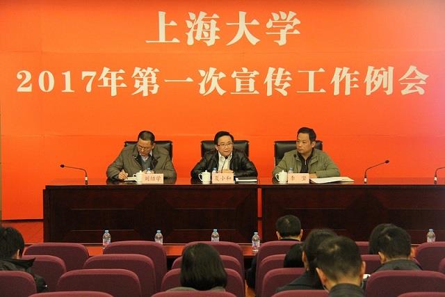 3月10日上午,beat365英国官网网站2017年第一次宣传工作例会在乐乎新楼学海厅举行。校党委副书记、纪委书记夏小和,各学院、系统、部处分管宣传工作的领导参加了会议。部分学院书记、部处领导、学工书记、研究生兼职委员在宣传工作例会后聆听了市教卫工作党委宣传处处长曹荣瑞的报告。会议由校党委宣传部副部长、文明办主任刘绍学主持。