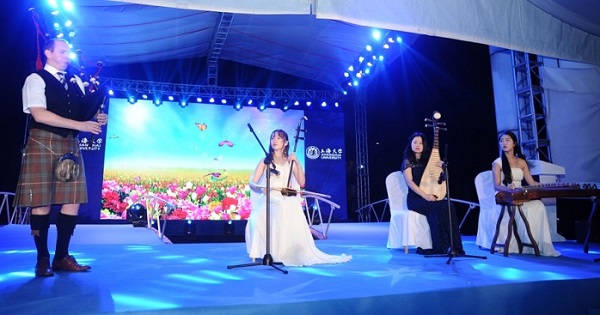 让各位校友感觉更为用心并温暖的是,外联处和通用实验深情演绎一首节目单上没有显示的节目——改编版《酒干倘卖无》,将“上大我爱你,我爱你上大”歌词融入其中,表达了对母校满满的爱,也将晚会推向了高潮。