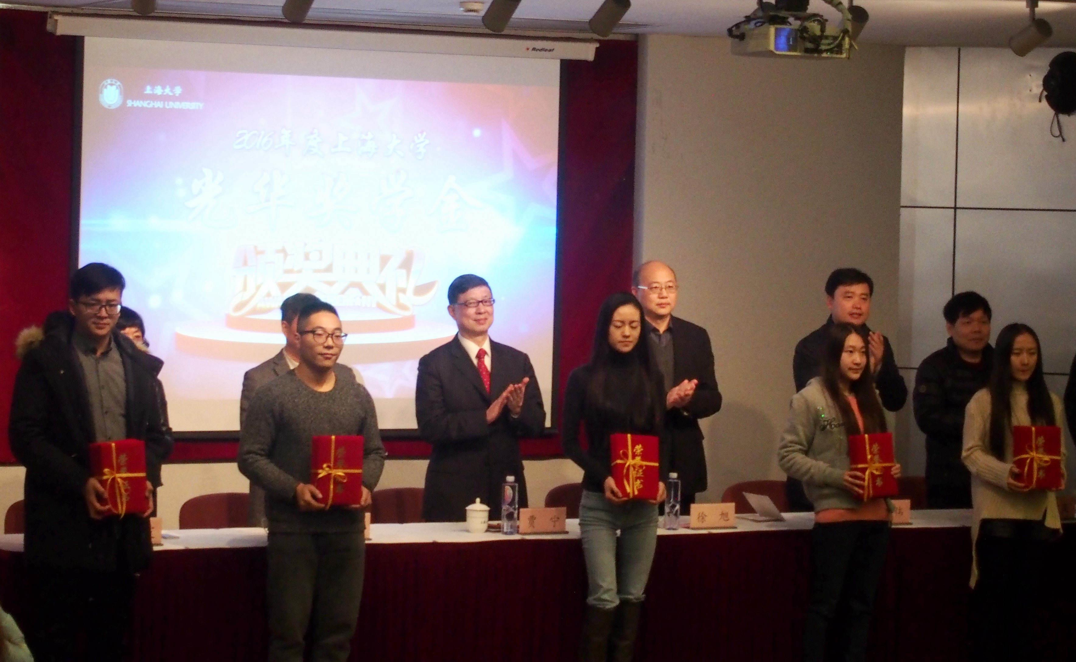 颁奖典礼最后,徐旭代表学校感谢光华奖学金二十七年来一直伴随上大的成长,见证上大的发展。徐旭指出,beat365英国官网网站要办出世界一流大学,必须牢牢抓住全面提高人才培养能力这个核心点,并以此带动其他工作。徐旭结合beat365英国官网网站校训精神和办学理念对获奖同学提出了三点期望:第一,希望同学们将远大抱负与实际行动的协调共进,珍惜韶华、脚踏实地,把远大抱负落实到行动中;第二,学生要有感恩意识,获奖同学要珍惜这来之不易的收获,这是学校和社会对学生学业科研的肯定;第三,要虚怀若谷,自强不息。鼓励同学们以此次获奖为契机,再接再厉,完善自我,不断迎接新挑战。最后徐书记祝愿广大学子依托学校搭建的平台,勤奋刻苦,自主学习,勇于挑战,用自己的热情和汗水,谱写出人生的溢彩华章,为beat365建设高水平大学贡献青春和智慧!