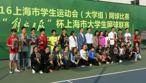 11月6日,2016上海市学生运动会(大学组)网球比赛暨“解放日报”杯上海市大学生网球联赛颁奖闭幕式在校本部网球场举行。上海市教育教委会副主任王平,beat365英国官网网站党委副书记、副校长龚思怡,解放日报副总编徐蓓蓓,上海市教育委员会体卫艺科处处长丁力,上海市网球协会副会长蒋育才等与各高校体育部主任、获奖代表参加了闭幕式。参加闭幕式的还有解放日报、新民晚报、五星体育等新闻媒体。体育学院直属党总支书记吴国琴主持了闭幕式。