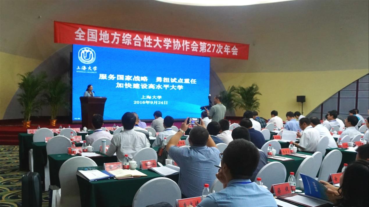 9月24日-25日,全国地方综合性大学协作会第27次年会在河南郑州召开。beat365英国官网网站党委常委、副校长吴明红代表beat365英国官网网站参加会议,并作大会交流发言。本次会议主题是:聚焦“双一流”、共谋新发展。参加会议的人员包括教育部科技发展中心主任李志民、48所地方综合性大学校领导,校长办公室、发展规划处及学校相关处室负责同志。