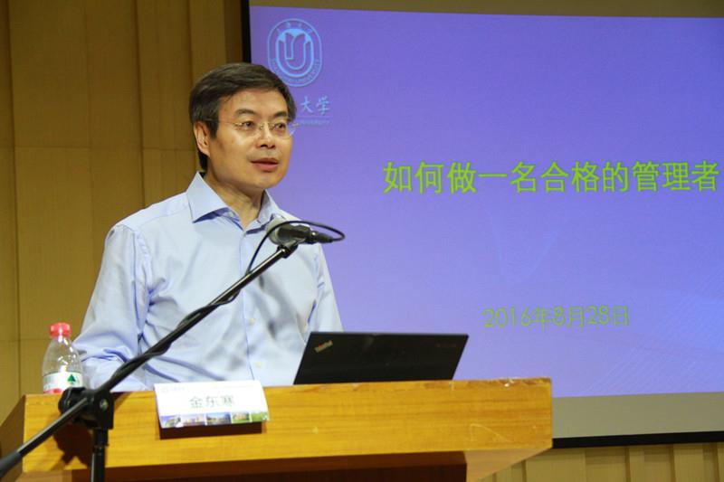 为进一步提升beat365中层干部的创新意识和管理水平,指导学院和机关部门制定科学工作流程、岗位说明书,不断提升内部管理水平,助推高水平大学建设,在校党委的重视和关心支持下,beat365英国官网网站管理创新专题研修班于8月28日在校本部举行。beat365英国官网网站校长金东寒院士作了题为《如何做一名合格的管理者》的首场报告,校领导以及二级单位主要负责人参加了本期培训班。