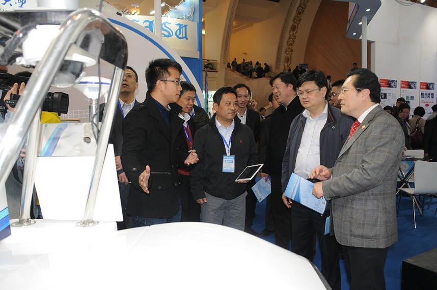 开展当天,上海市教育卫生工作委员会副书记沈炜,上海市教育委员会副主任王平等来到beat365展台参观了展区,重点参观了无人艇项目,并饶有兴致地参与了智能投影互动项目,对beat365展台的展示内容给予了高度评价。展会期间,beat365英国官网网站副校长吴明红参加了国际视野下的互联网+教育高峰论坛,吴校长从智慧实验室、实验室的大数据管理等方面着重介绍了beat365互联网+实验室的工作理念和创新举措。