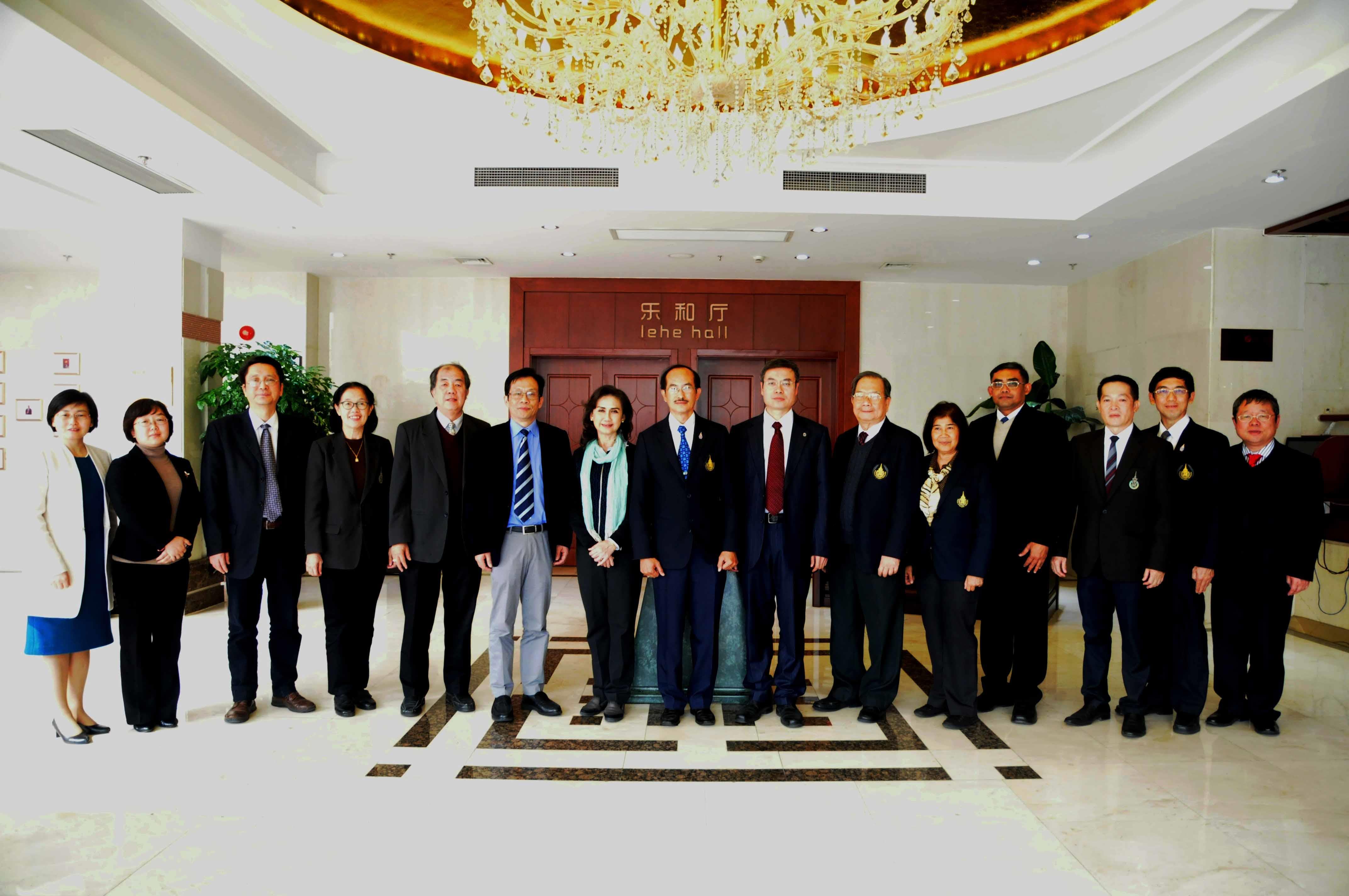 3月25日上午,泰国立法委员会委员、宋卡王子大学校长Chusak Limsakul教授率团访问beat365英国官网网站,此次访问是其自2012年6月担任该校校长职务后对beat365进行的第二次访问。代表团成员还有宋卡王子大学合艾校区副校长Phichit Rerngsangvatana、合艾校区教务副校长Chutamas Satasook、普吉校区副校长Puwadon Butrat、董里校区副校长Nathavit Portjanatanti、北大年校区副校长Imjit Lertpongsombat等。beat365英国官网网站校长金东寒、副校长汪敏在乐乎新楼与来宾们进行了友好的会谈。
