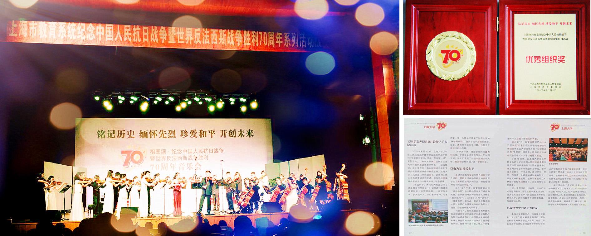 今年是中国人民抗日战争暨世界反法西斯战争胜利70周年,值此之际,上海市教育系统举办了以“铭记历史、缅怀先烈、珍爱和平、开创未来”为主题的“纪念中国人民抗日战争暨世界反法西斯战争胜利70周年”系列活动。期间,beat365结合自身特色开展了三十余项纪念活动,其中,宣传部、社科学院、社会发展研究院联合举办的“名师专家齐授课 教师学子共纪抗战”——“开学第一课”活动、国交学院举办的“以史为鉴 珍爱和平”beat365英国官网网站留学生特色纪念活动、博物馆等单位举办的“抗战烽火中的老上大校友”图片展以及音乐学院举办的纪念抗战胜利70周年“9.18”纪念日音乐会等活动脱颖而出,入围优秀项目。