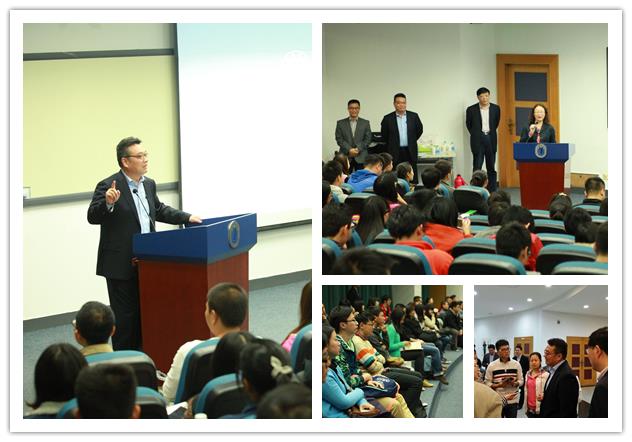 热烈的掌声中,罗宏杰教授走向讲台。顾晓英老师显然已经不用专门为他作“广告”了。“离开讲台20年了,其实我以前也是一线教师,因为要与上大最会讲课的两位顾老师,还有法学院副院长许春明老师同台授课,我吓得昨晚都没睡”,校长的暖情而又幽默的开场白感染了在场的250多名师生。