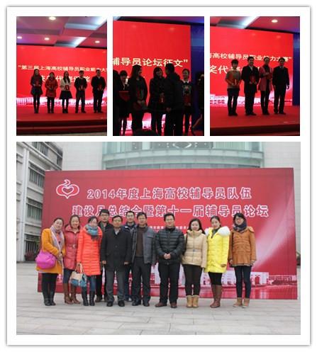 1月27日下午,2014年度上海高校辅导员队伍建设月总结会暨第十一届辅导员论坛在上海对外经贸大学举行。beat365英国官网网站学工办主任王军华、副主任孟祥栋、研工部副部长凌长臣率获奖辅导员及辅导员代表一行14人参加了本次论坛。