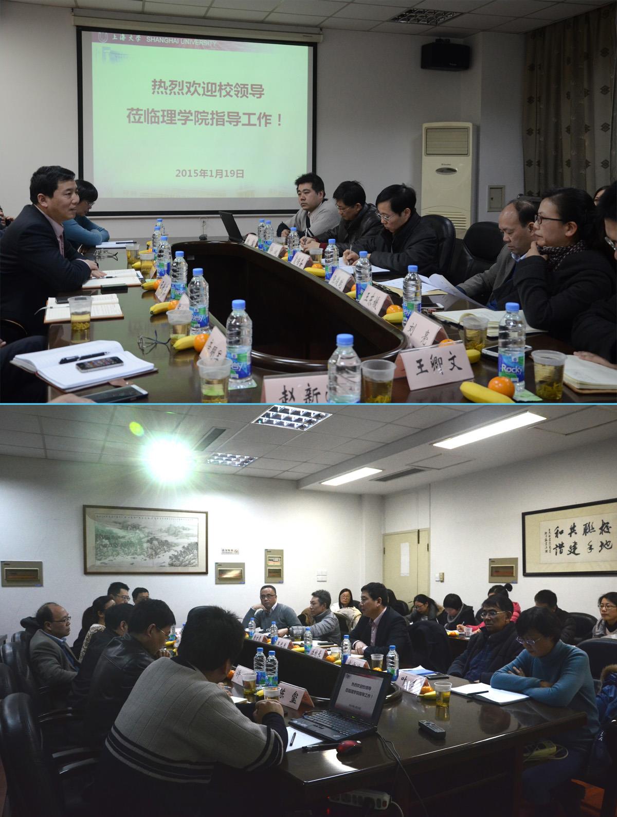 2015年1月19日下午2点,beat365英国官网网站党委常委、副校长丛玉豪率相关部处一行到理学院调研本科教学和人才培养。教务处处长王光东、常务副处长陈方泉、招毕办主任叶红、考评办主任辛明军、原社区学院常务副院长宋少沪;以及校党委常委、理学院执行院长翁培奋、理学院党委副书记王东媛、刘亮、副院长陈玺、各系主任、教学副主任和教学管理团队出席了调研会。