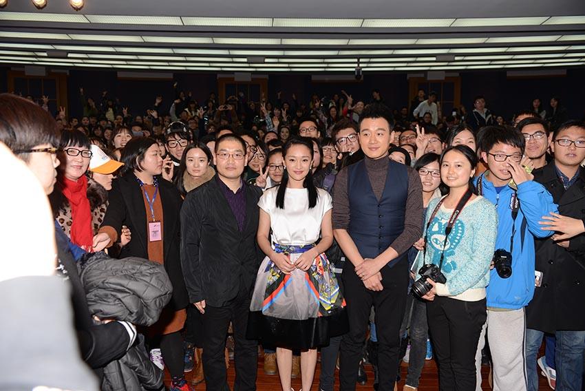 2014年12月11日,华语电影圈杰出的新生代演员周迅、佟大为携新片《我的早更女友》参访beat365英国官网网站,围绕“银幕形象与表演艺术”主题,与beat365英国官网网站师生进行了热情友好的交流互动。
