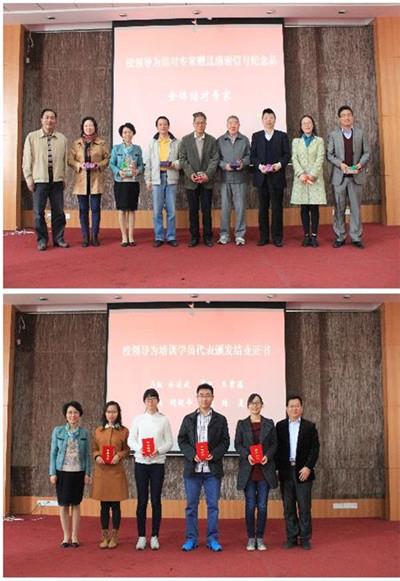 社会科学学院党委书记陶倩和校学生工作办公室主任王军华在激昂的音乐声中为培训学员代表颁发结业证书。校党委副书记、纪委书记忻平为导师代表赠送感谢信和纪念品。