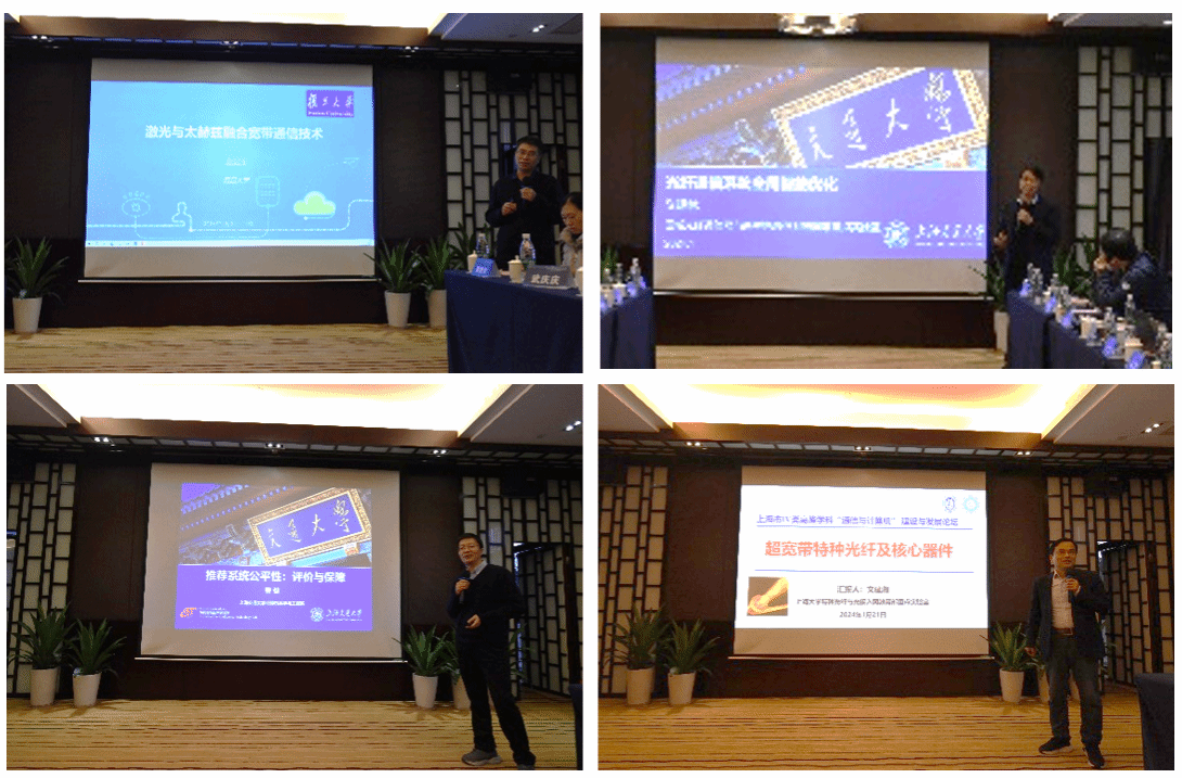 在特邀报告环节,复旦大学余建军教授作“激光与太赫兹融合宽带通信技术”的特邀报告,上海交通大学义理林教授作“光纤通信系统全局智能优化”的特邀报告,上海交通大学曹健教授作“推荐系统公平性:评价与保障”的特邀报告,beat365英国官网网站文建湘教授作“超宽带特种光纤及核心器件”的特邀报告,现场讨论气氛热烈。