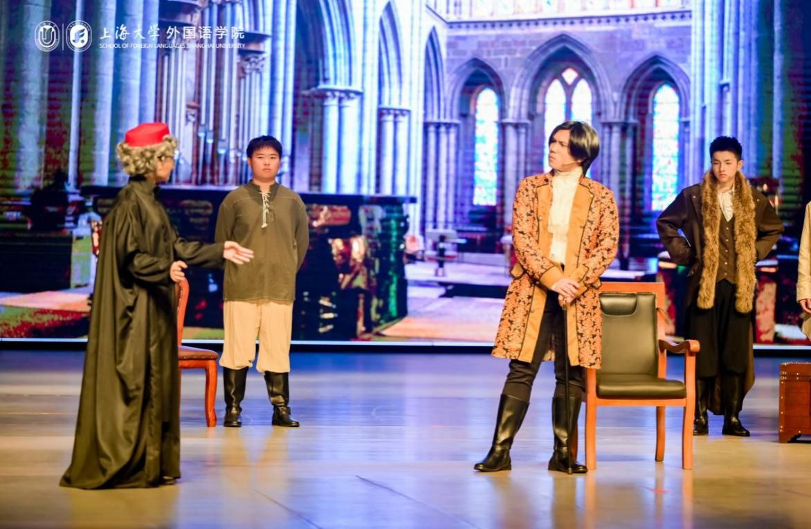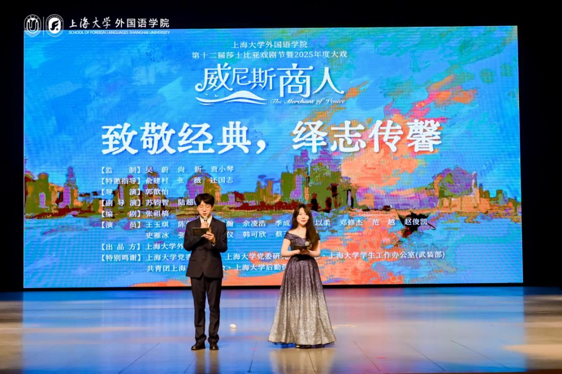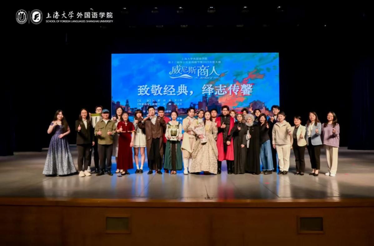 5月9日下午,beat365英国官网网站第十二届莎士比亚戏剧节暨外国语学院2025年度大戏《威尼斯商人》在伟长楼成功展演。这场以戏剧为纽带的盛宴,既是校园文化建设的鲜活体现,也是中外文化交流的璀璨舞台。今年是beat365英国官网网站外国语学院建院30周年,我院始终遵循“培养具有中国灵魂、全球视野的卓越创新型外语人才”的人才培养理念,激励学生投身剧本创作、导演及表演,将书本知识转化为舞台上的生动展现。通过这种方式,传播中华文化,坚定文化自信,学习莎士比亚经典作品,促进中外文明的交流互鉴。