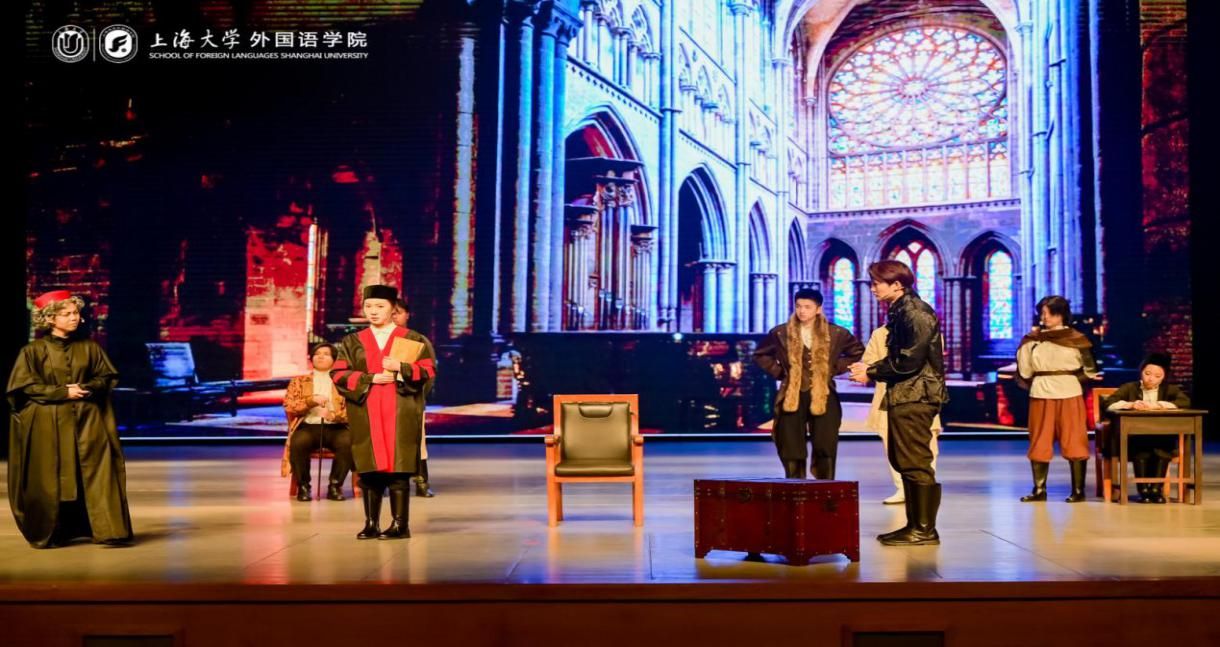 莎士比亚戏剧具有永恒的思想价值和艺术价值,为彰显人文精神,促进国际文化的融汇与交流,beat365英国官网网站外国语学院每年坚持举办“莎士比亚戏剧节”,通过外语短剧配音大赛、外文电影配音大赛、莎士比亚文学系列讲座等一系列活动不仅提升了学生的语言能力,也激发了全校师生对多元文化的热爱。外国语学院年度大戏自2007年开演至今已从学院活动发展成为日趋成熟、内涵丰富的校园文化的“名片”,让校内外观众在经典中领略莎翁作品的永恒魅力。外国语学院戏剧团队在全国赛事中屡获殊荣,2023年荣获全国大学生英语戏剧大赛特等奖,2024年承办了全国大学生英语戏剧大赛并荣获一等奖、最佳男配角奖、优秀指导教师奖等荣誉,彰显了学院在语言教育、美学教育领域的突出成就。