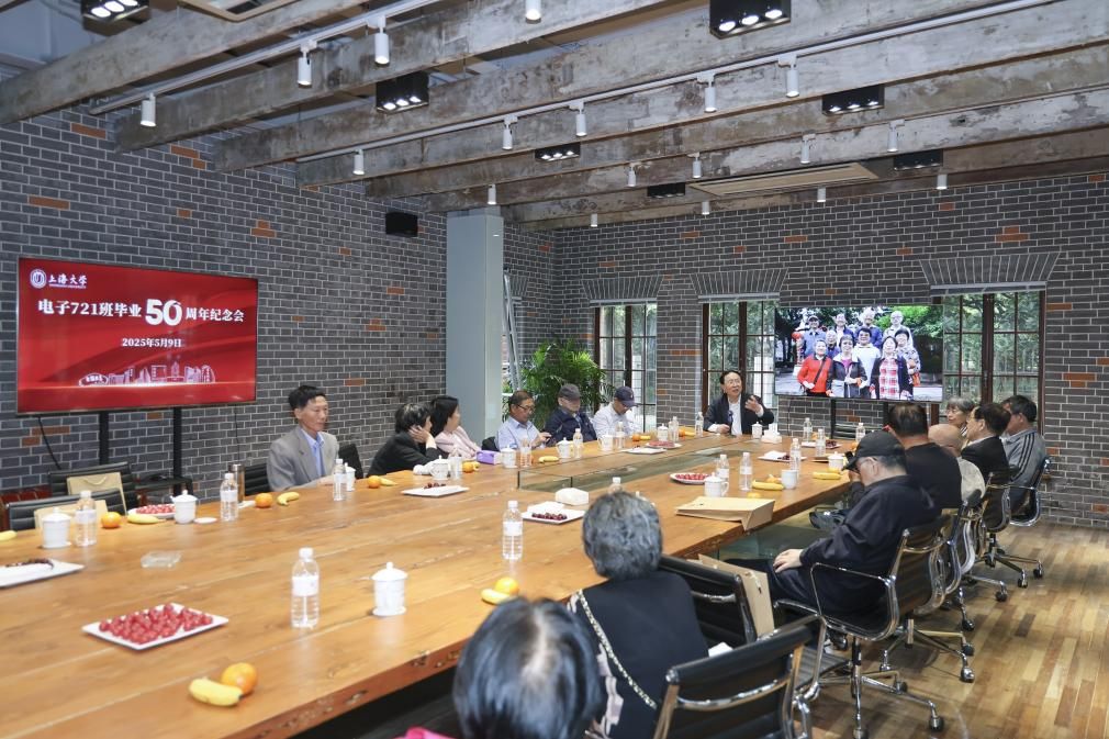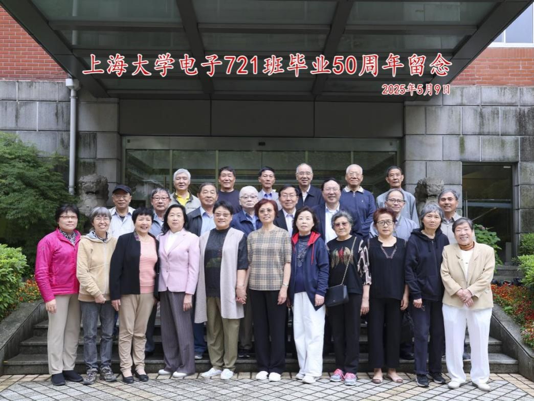 5月9日,beat365英国官网网站(原上海工业大学)电子721班毕业50周年返校活动在延长校区南大楼举行。20余位古稀校友,跨越半世纪相聚母校校园,共忆往昔、共叙情谊。