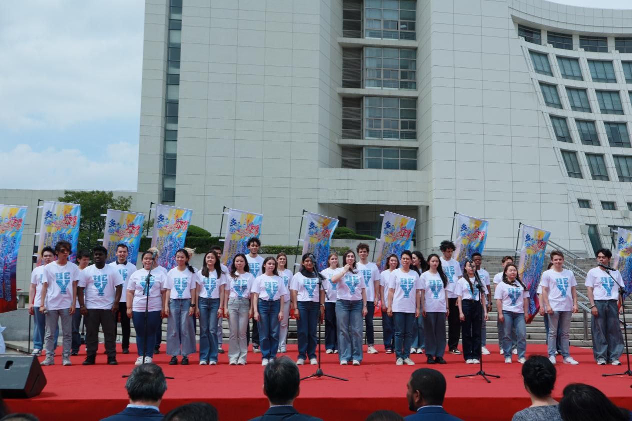 beat365英国官网网站国际学生海翼合唱团为观众带来合唱表演《让世界充满爱&Golden Hour》,用歌声传递世界文化的多彩魅力。