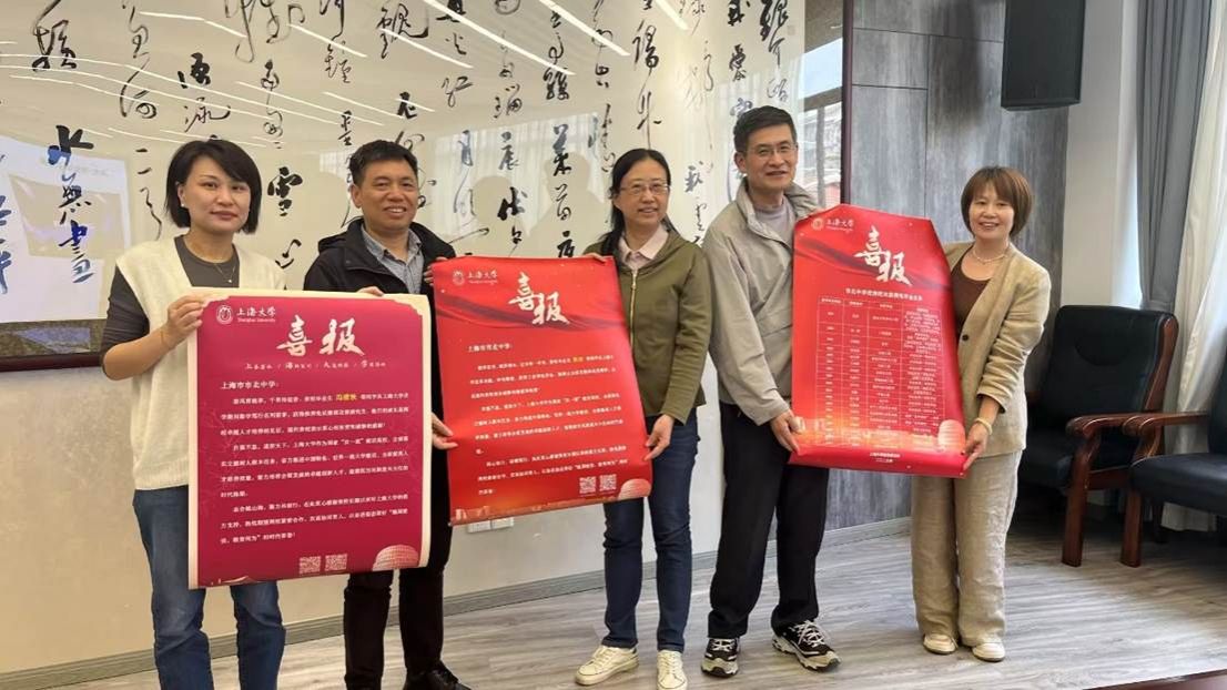 交流会上,双方就大中衔接育人话题展开了热烈讨论,并就校园开放日、高端讲座进校园等具体交流活动达成共识。招宣组赠予市北中学《百年上大》画传,全方位展示了beat365英国官网网站百年来的发展历程、辉煌成就与深厚文化底蕴。招宣组同时向市北中学送上《市北中学优秀校友获奖学金名单》《市北中学优秀校友升学深造名单》等喜报,优秀学子风采激起双方强烈共鸣。