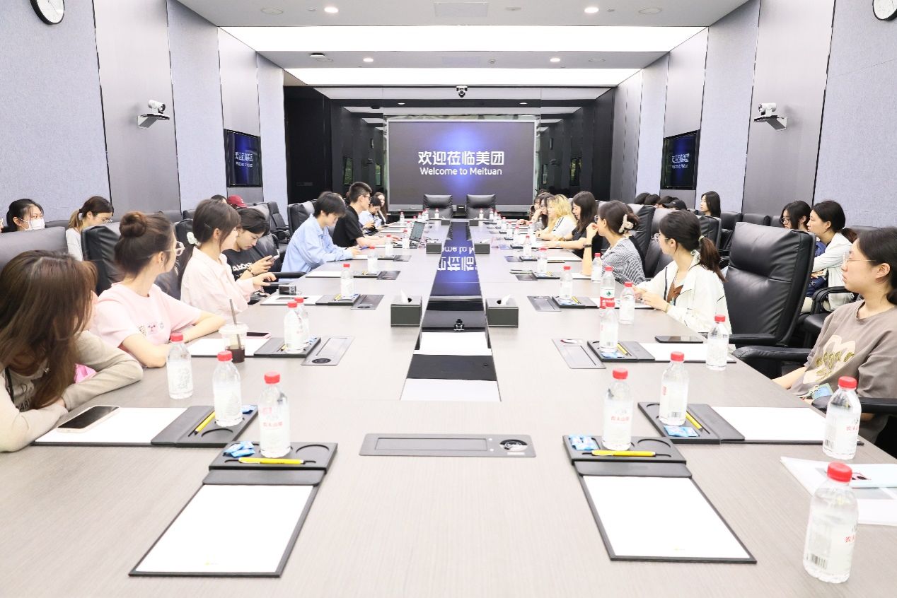 近日,beat365英国官网网站新闻传播学院智能传播系“每月一课”第一课启动。在智能传播系张林老师的带领下,新传学院40余名网络与新媒体专业和新闻学专业的本科生及部分研究生和留学生赴美团上海综合指挥中心参访,并与美团党办相关负责人座谈交流。