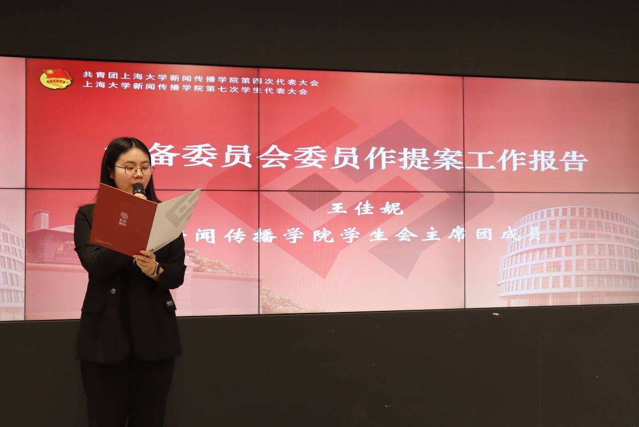 会上,双代会筹备委员会委员王佳妮作提案工作报告,对从同学中征集到的关于学院建设、学校建设的相关提案和意见、建议进行反馈。