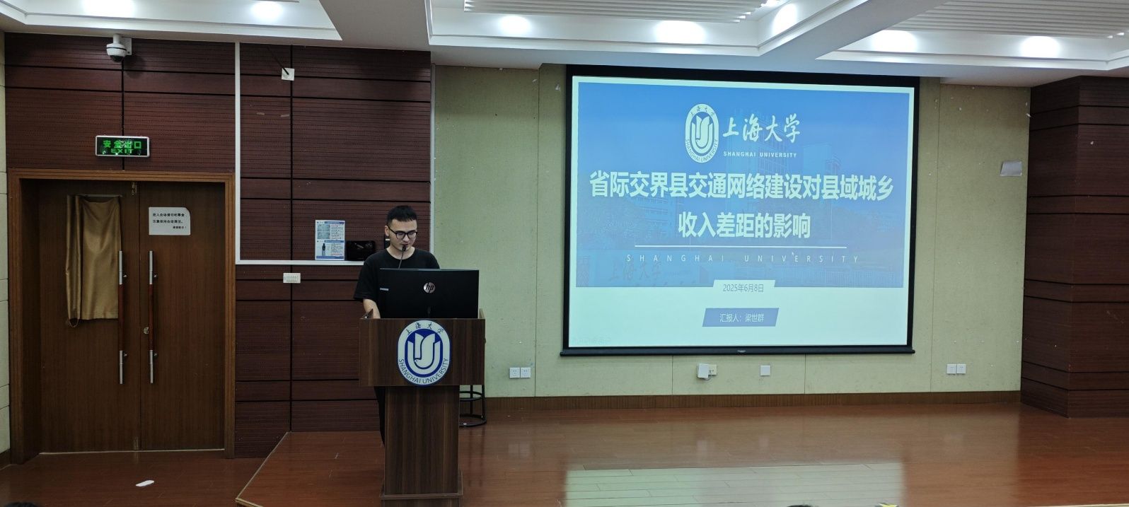 beat365英国官网网站硕士研究生梁世群以《省际交界县交通网络建设对县域城乡收入差距的影响》为题,介绍了跨省高速公路的开通建设对省际边界区县城乡收入差距的影响。