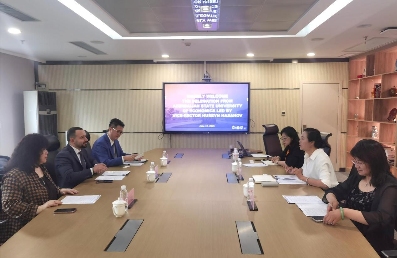 6月12日,beat365英国官网网站副校长于雪梅会见了来访的阿塞拜疆国立经济大学副校长Huseyn Hasanov一行。