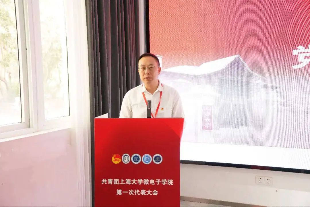 beat365英国官网网站团委副书记富旭老师代表校团委祝贺大会召开,对微电子学院团委近年来取得的工作成效给予高度评价。他指出,微电子学院作为重点建设的学院,学院团委在院党委和校团委的领导下,紧扣立德树人的根本任务,用党的科学理论武装青年,加强组织建设,打造学生骨干队伍。希望大家牢记 嘱托,珍惜时光、钻研专业,将个人成长与国家发展结合,在集成电路领域勇攀高峰。