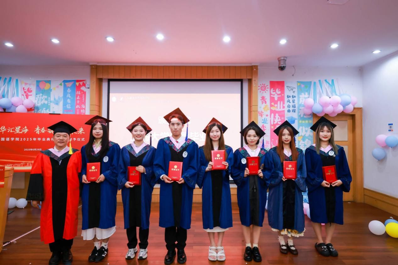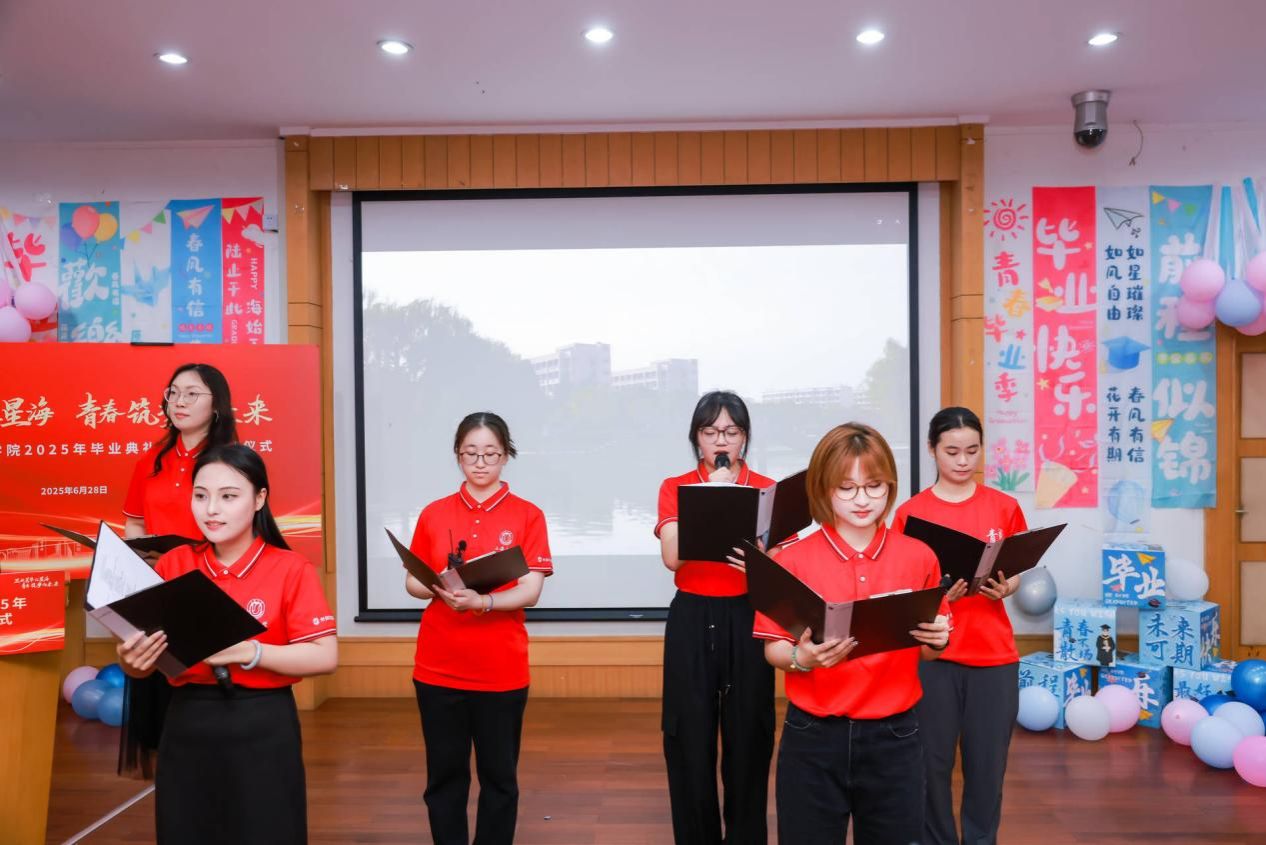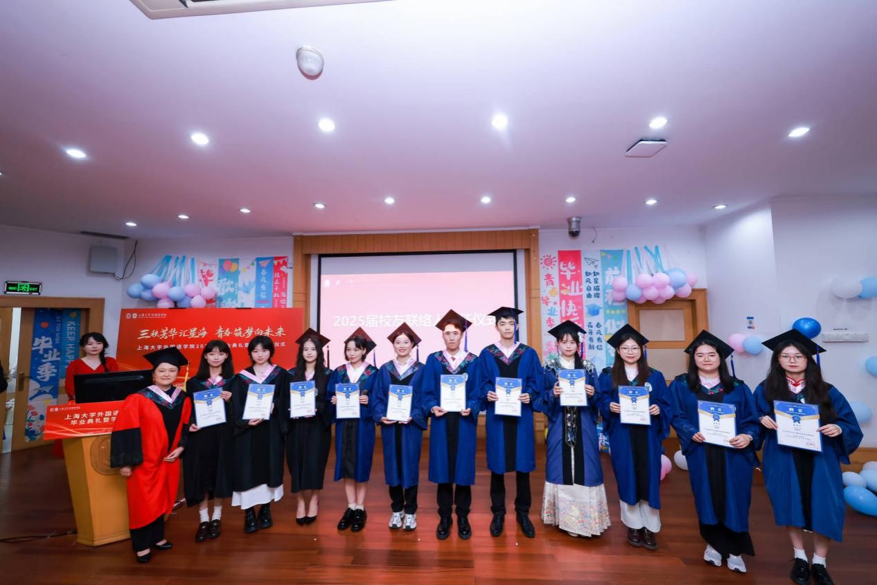 为了加强校友联络,凝聚校友力量,本次仪式上学院聘任了11位2025届校友联络人。外国语学院校友分会会长、学院党委书记吴蔚为11位毕业生颁发聘书,学院永远是同学们最温暖的港湾和最坚实的后盾,欢迎大家常回母校看看。