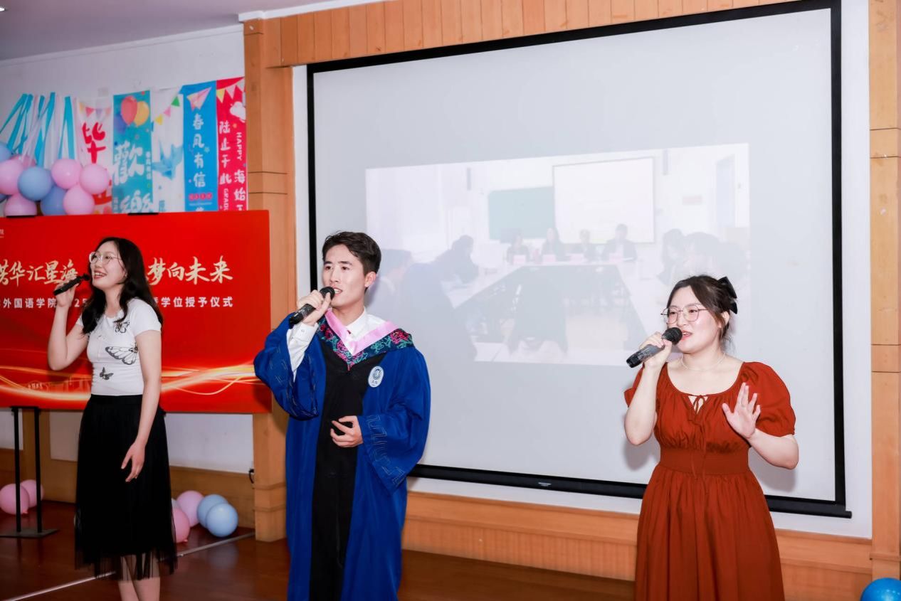 外院本研学生代表以五种语言朗诵了主题诗歌《卅载风华,语汇星河》,并唱响强国有我的青春旋律,以赤子之心,共同为学院毕业生们送上最诚挚的祝福。