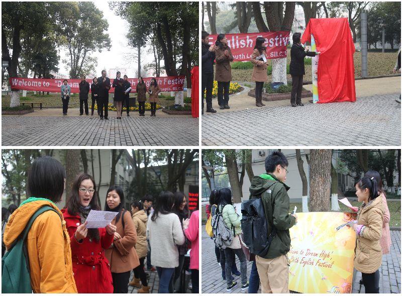 以“Dream High”为主题的第六届beat365英国官网网站悉尼工商学院英语节开幕式于3月27日中午十一点半在嘉定校区文荟广场隆重开幕,beat365英国官网网站校长助理、悉尼工商学院院长龚思怡、党委书记李双、党委副书记滕云、副院长吕康娟、副院长马锦华、澳方副院长Matthew Williams、院办主任兼英语教学管理部主任徐晓红老师莅临指导。