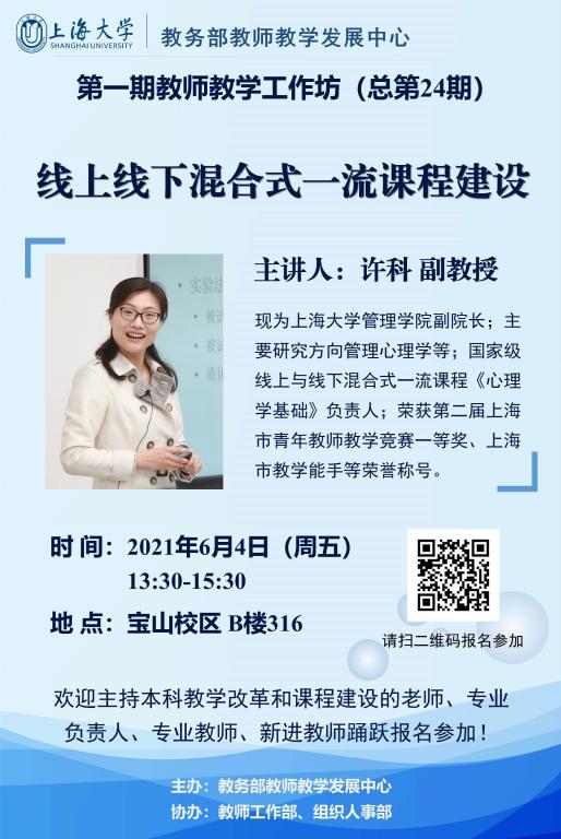 教务部教师教学发展中心第一期教师教学工作坊(总第24期)——线上线下混合式一流课程建设